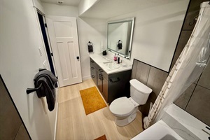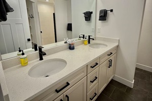 Pamper yourself in the luxurious soaking tub with jets or refresh in the rainfall shower. The open, spacious layout ensures your group has plenty of room to spread out and enjoy your time together.